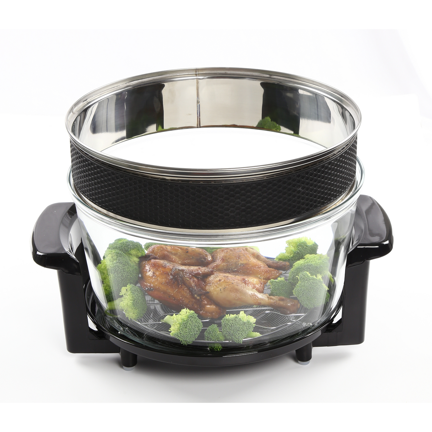 The large glass dish is removable and washable, for easy serving and cleaning, once the dish has finished cooking, pop the pot on your table to serve, and put in the dishwasher once you are done. The accessories include a lid holder, a pair of tongs, a low rack and high rack for different cooking levels.