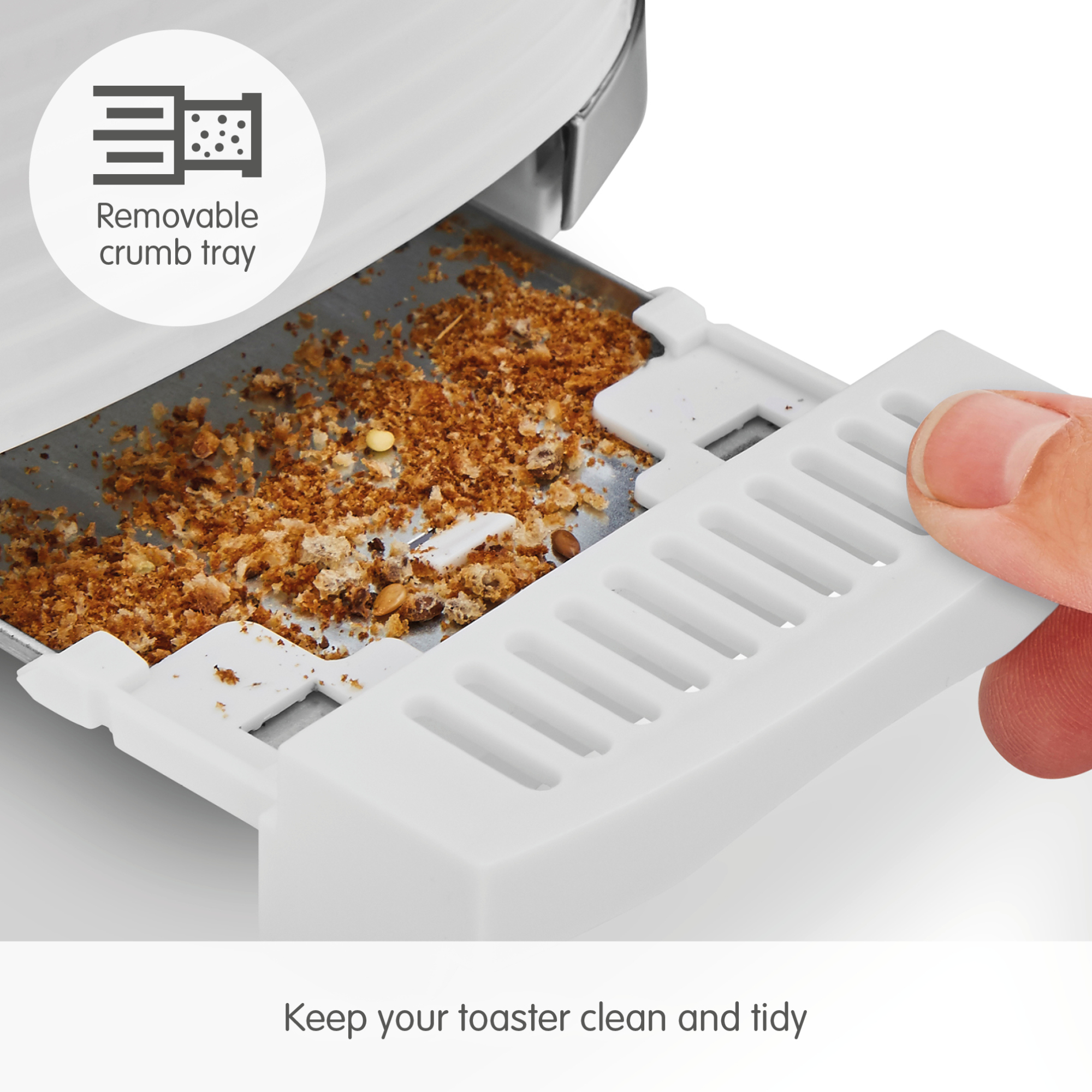 Maintenance of the Morphy Richards toaster is easier than ever with the removable crumb trays and cord storage to keep your worktop completely tidy.