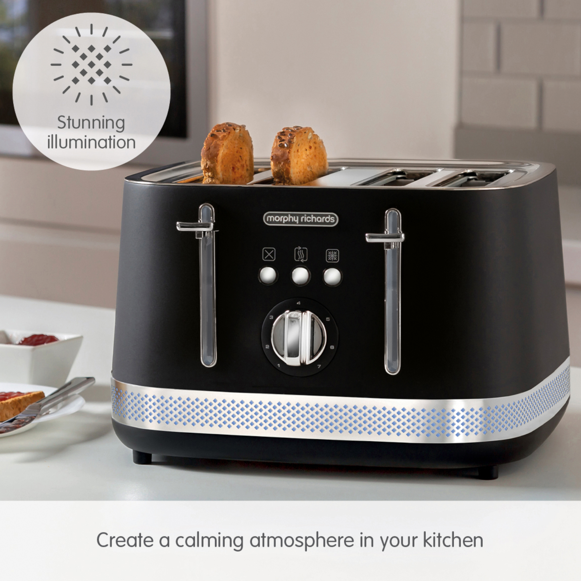Morphy Richards 248020 Illumination 4 Slice Toaster with Auto Pop Up - Black