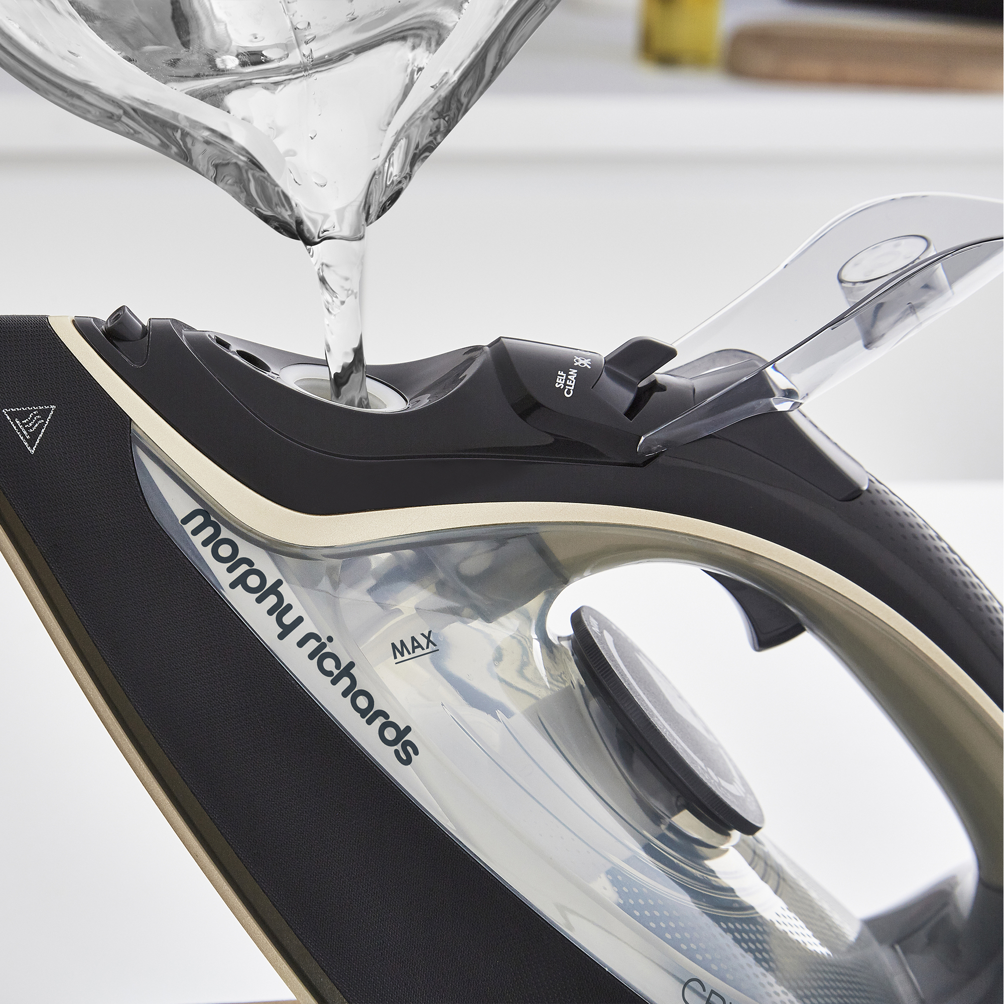 The quality of the device is unquestionable with the built-in precision tip for small, hard to reach zones and the 'Pearl Ceramic' non-stick, self maintaining soleplate. Also, you can spend more time ironing and less time refilling the water tank as the Morphy Richards 303131 boasts a large 400ml cabinet.