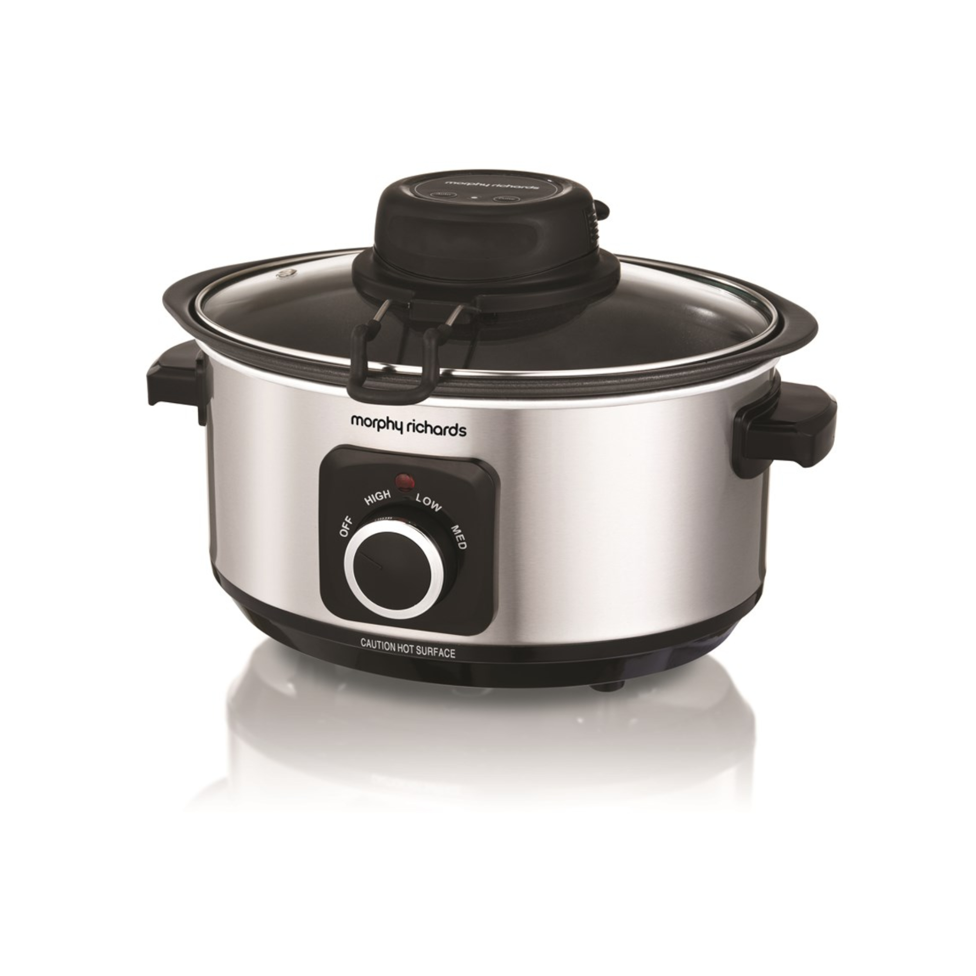 This 'Sear and Stew' Morphy Richards slow cooker takes slow cooking convenience to new heights. Make healthier meals and cook your favourite nutritious dishes with absolute ease - the integrated stirring paddle means this slow cooker will automatically stir any dish which requires stirring throughout the cooking process, activating every 30 mins, distributing flavours evenly across the pot (a 'Pule Stir' button is featured for manual stirring). The 'hob-proof' inner cooking pot is perfect for searing any meat or vegetable pieces before the clow cooking process; Just remove the pot, place it on the hob and go, making your cooking times much more efficient with less washing-up.