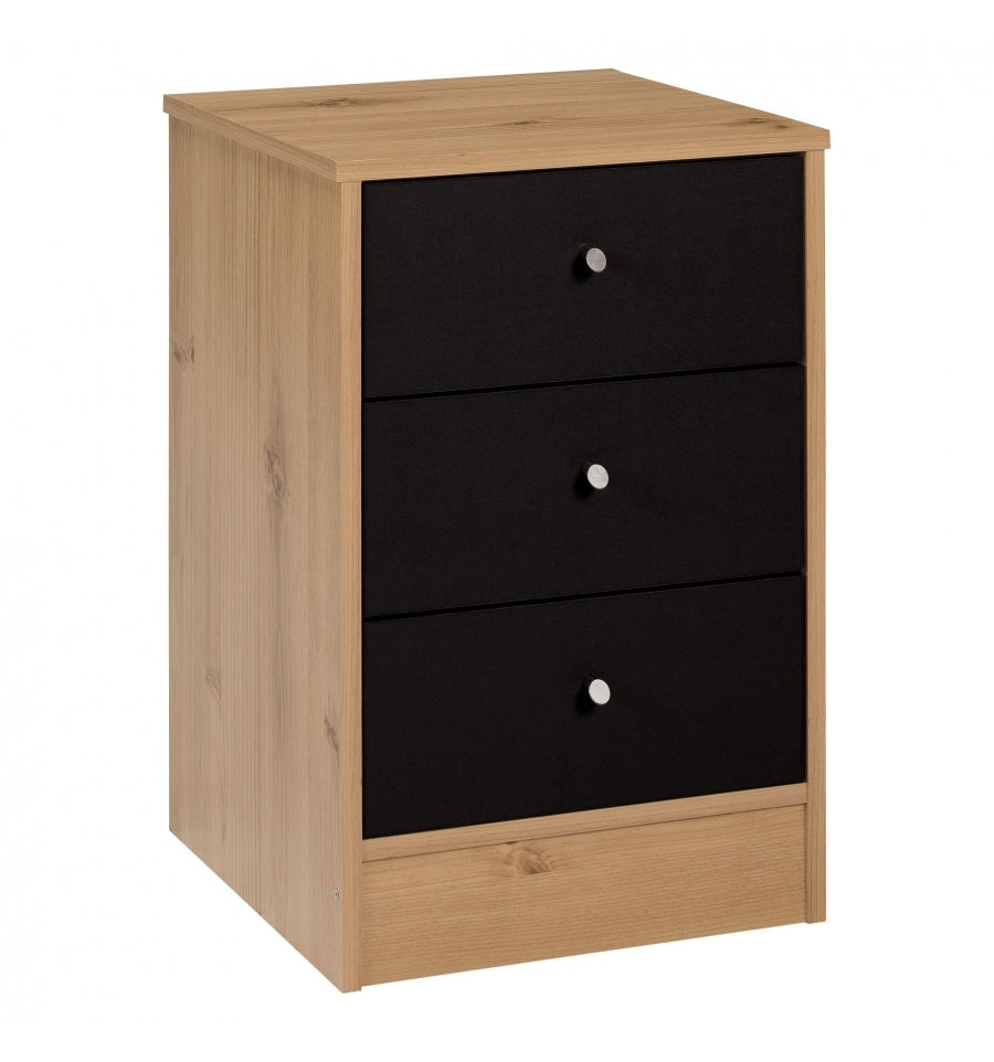 MALIBU 3 DRAWER BEDSIDE CHEST - BLACK ON PINE [146/6935]