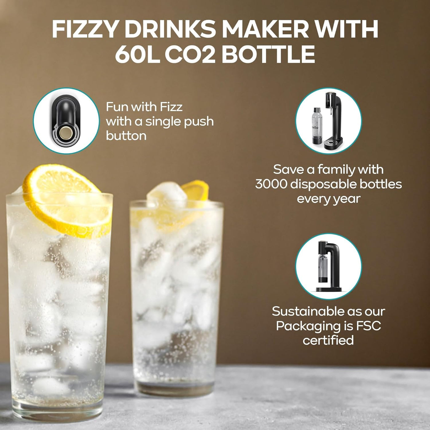 • Sparkling water in seconds