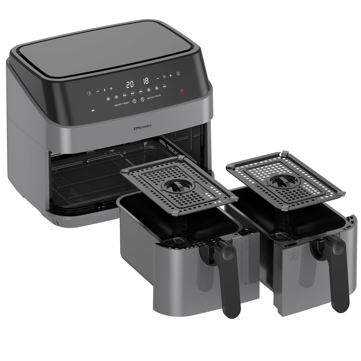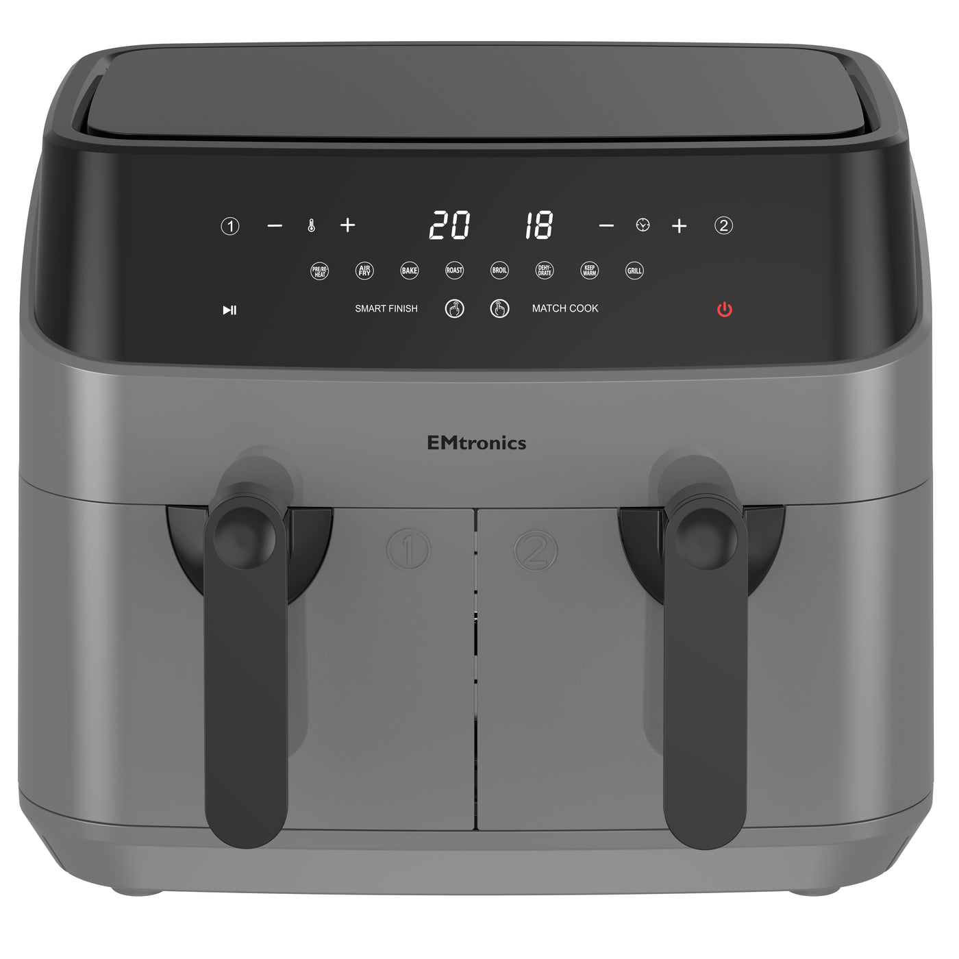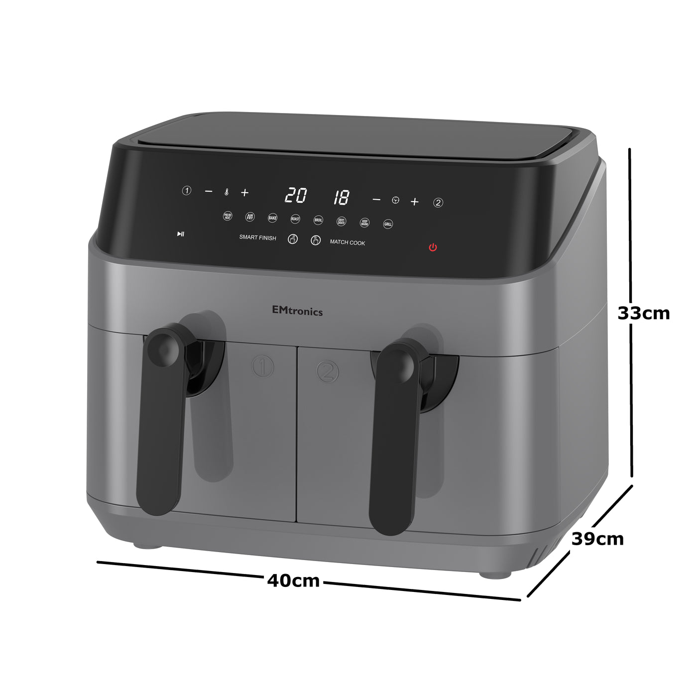 EMtronics Double Basket Air Fryer 9 Litre with 99 Minute Timer - Grey