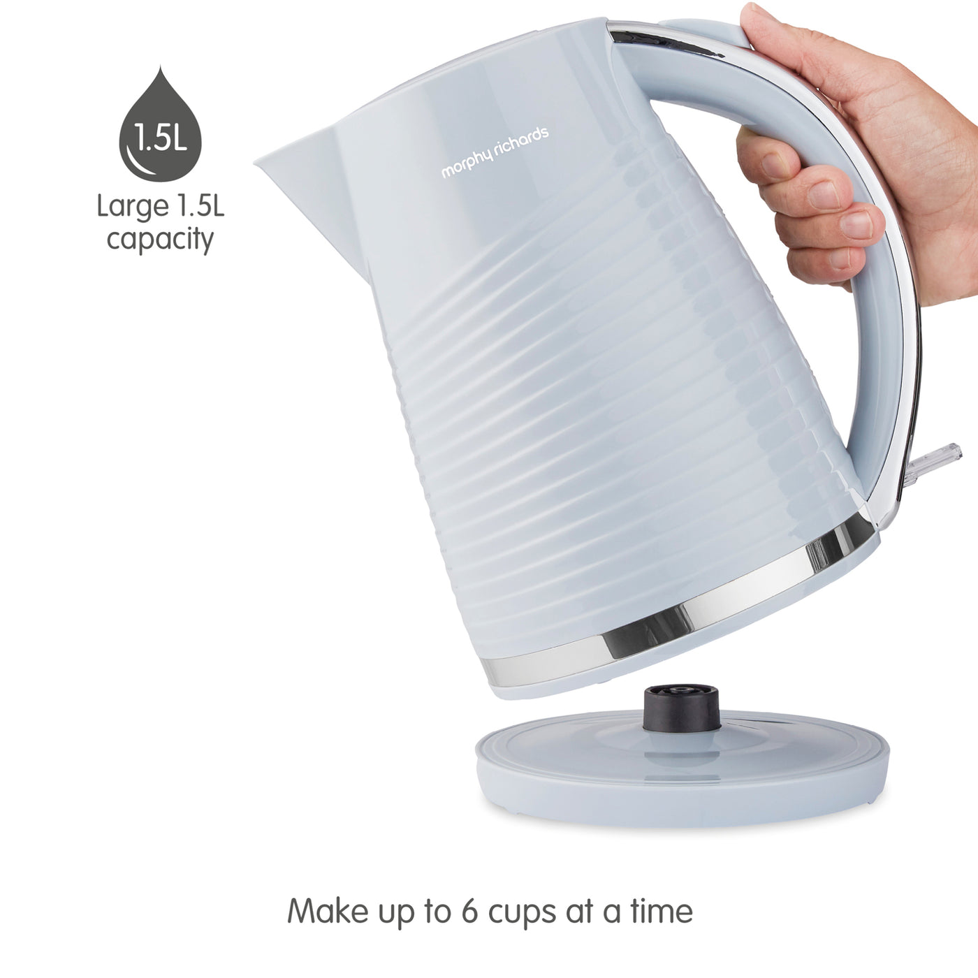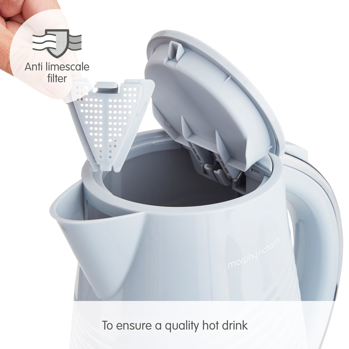 Give your kitchen breathe of fresh air with 'Dune' range, Morphy Richards kettle. Featuring a textured, glossy plastic finish; hosting a simple but sweeping aesthetic for any kitchen worktop. Also, the 1.5 Litre electric jug kettle has a 'Easy View' water level indicator which illuminates - allowing you to see the water level in any lighting.